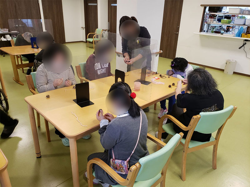 絆Ⅱでは、そんな不安や迷いを少しでも解消できるよう、早い段階からグループ企業が運営する生活介護事業所(太陽Ⅱ)との交流を設けています。